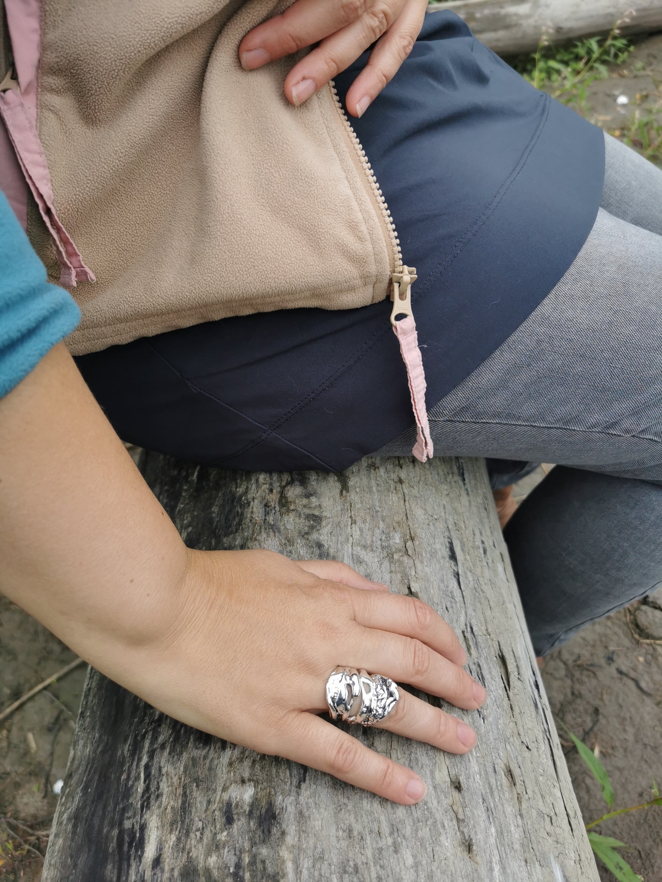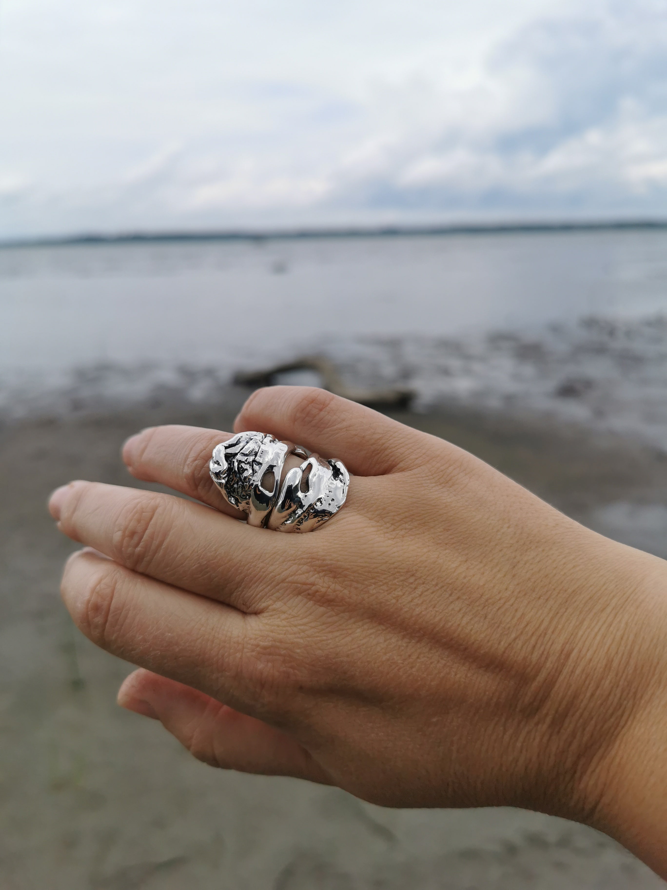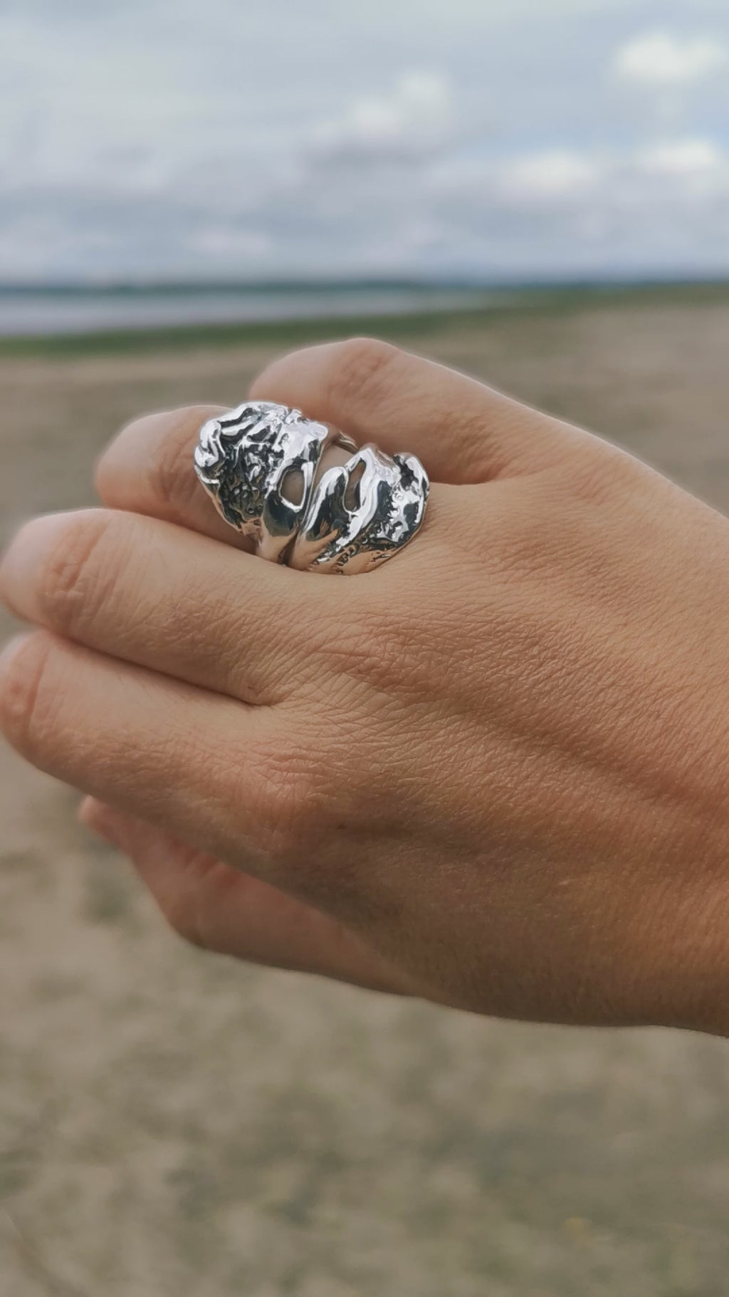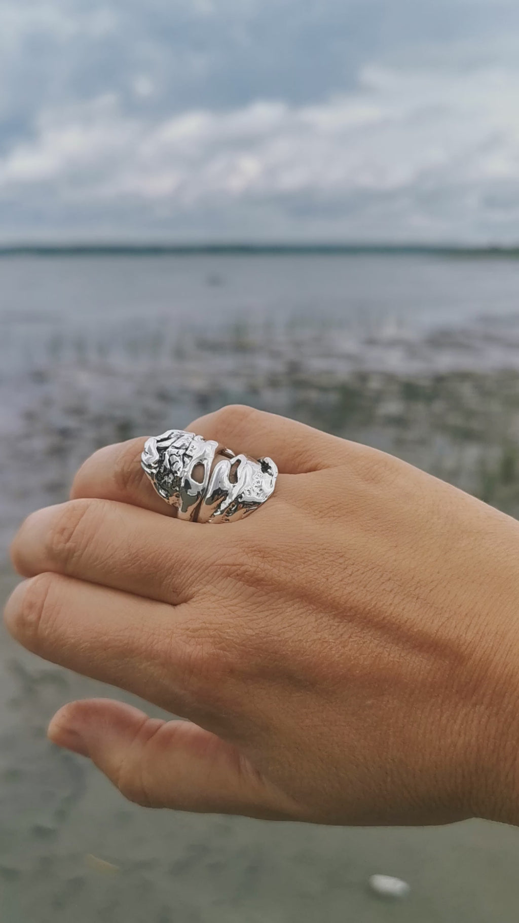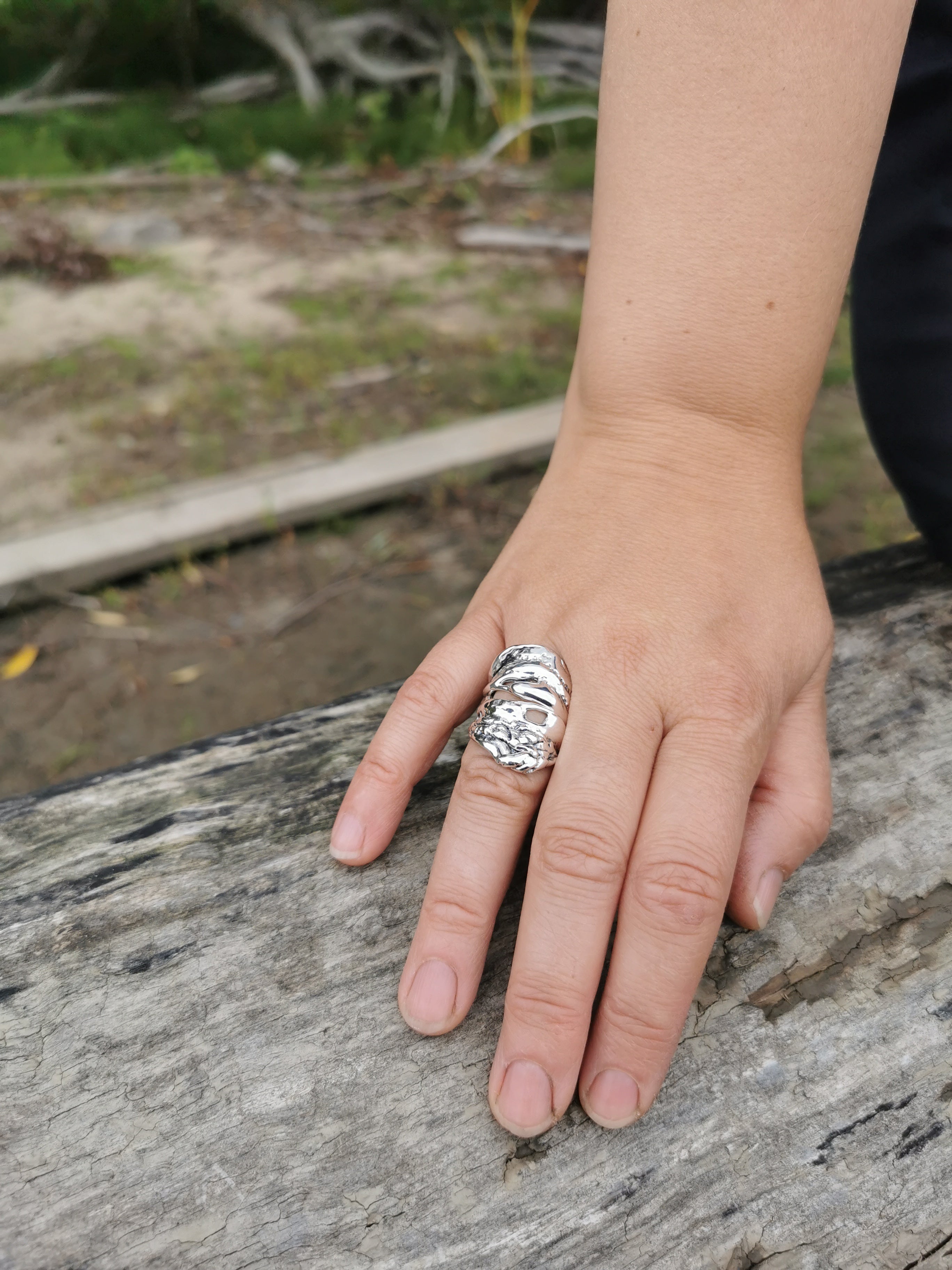 Bague en forme de vague avec une texture fabriquée à partir d'un moulage d'un coquillage d'oursin de mer.