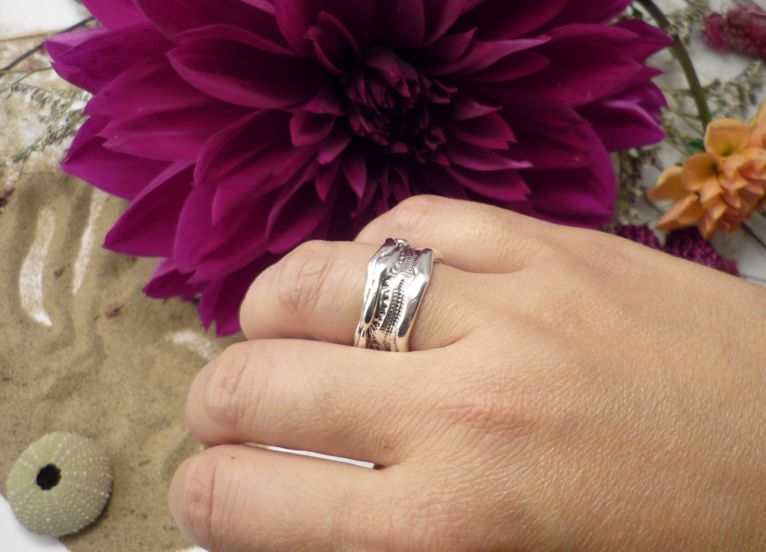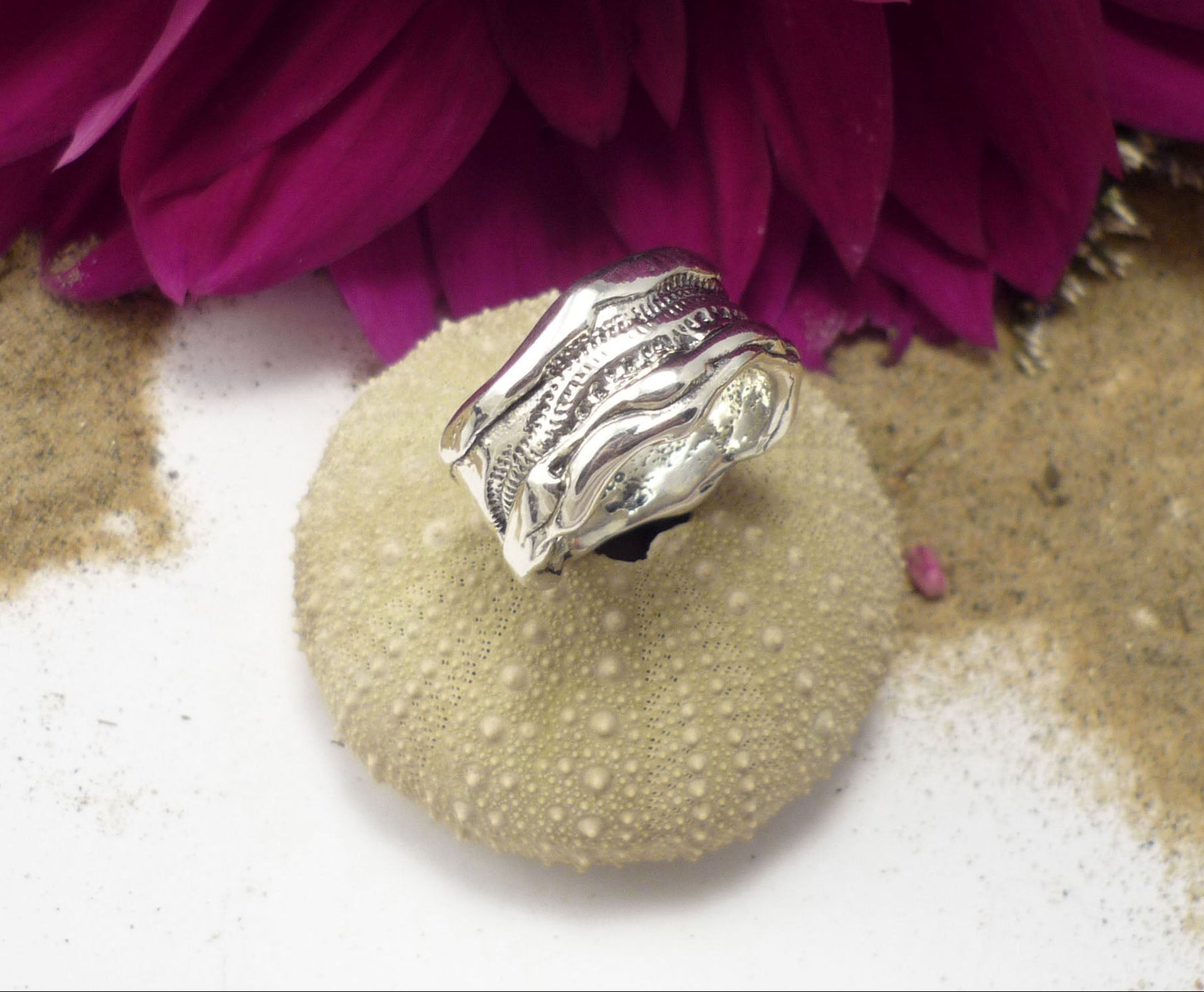 Moulée sur un coquillage d’oursin et inspirée des rivages marins, cette bague unisexe en argent sterling capture la liberté et la sérénité du bord de mer. Un bijou artisanal, symbole de souvenirs précieux et intemporels.