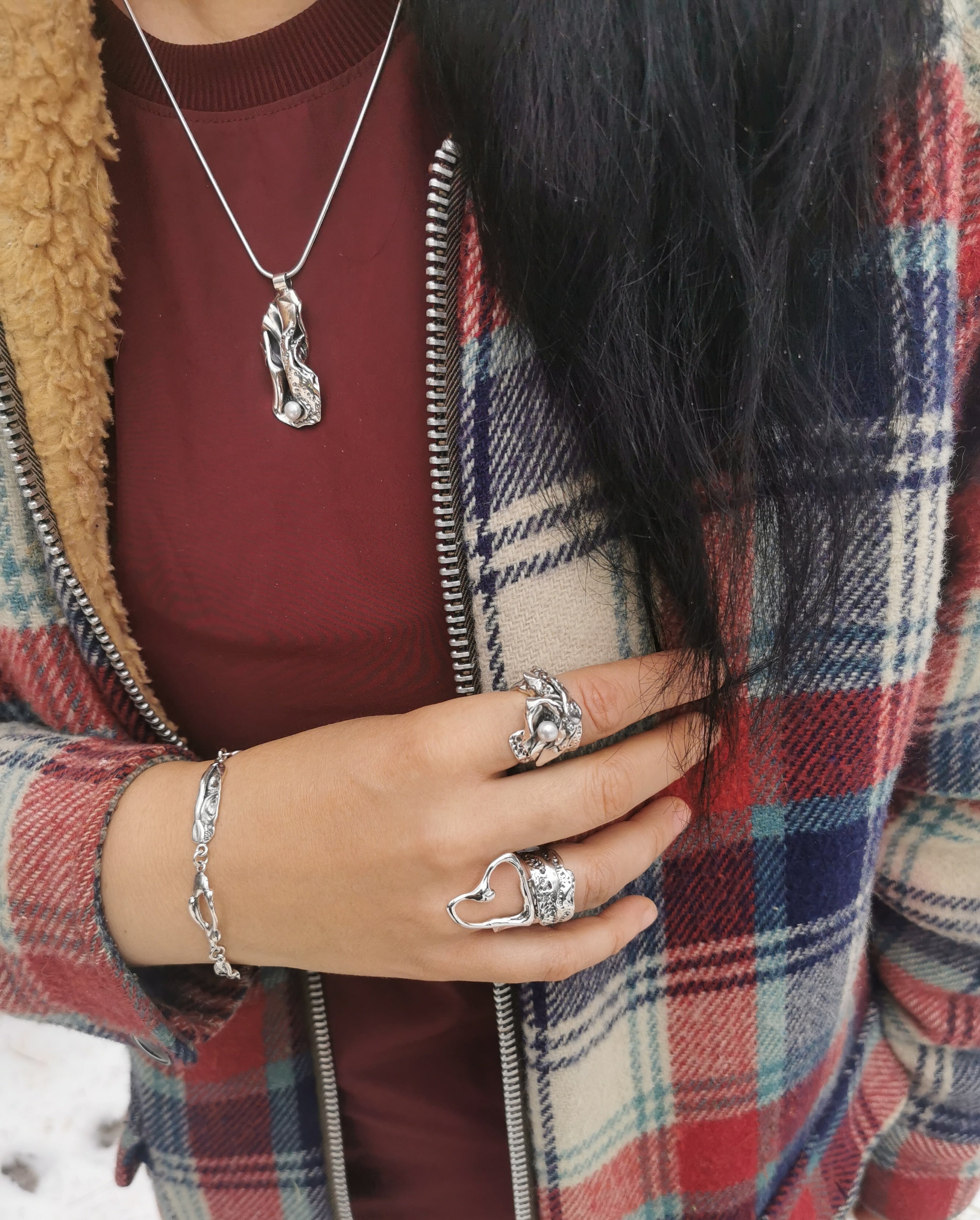 Le bracelet Vague silencieuse évoque à la fois la force la force tranquille de l'océan et la beauté brute des éléments marins.