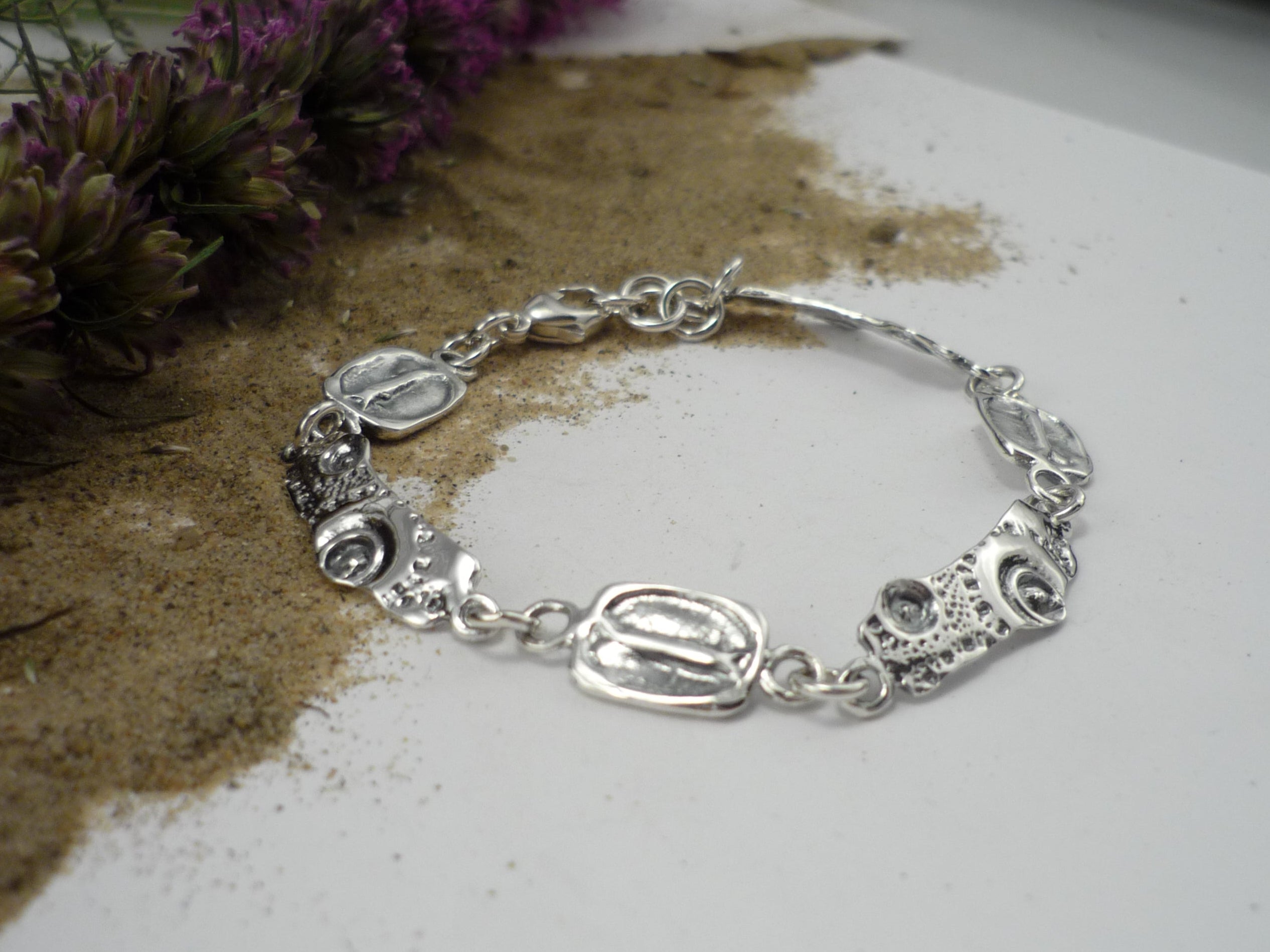 VAGUE D'ESPRESSO, bracelet en argent sterling avec empreinte oursin de mer et grain de café!