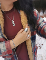 L'argent sterling est un alliage contenant des métaux qui réagissent avec les produits présents dans l'air et produisent l’oxydation. L’exposition à la lumière du soleil ainsi que l’humidité augmente cette réaction qui est tout à fait normale et facile d'y remédier. Prenez soin de nettoyer le bijou avec un linge à polir sec, (vous en recevrez un gratuitement à l'achat de chaque bijou) il est réutilisable même s'il noircit. TRUC: lorsque vous ne le portez pas, déposer la pièce dans un sac hermétique, cela ralentira le processus d'oxydation et vous épargnera le nettoyage.