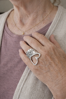 Cette bague en argent sterling marie la douceur du cœur ouvert et la richesse des textures inspirées du coquillage d’oursin de mer.
