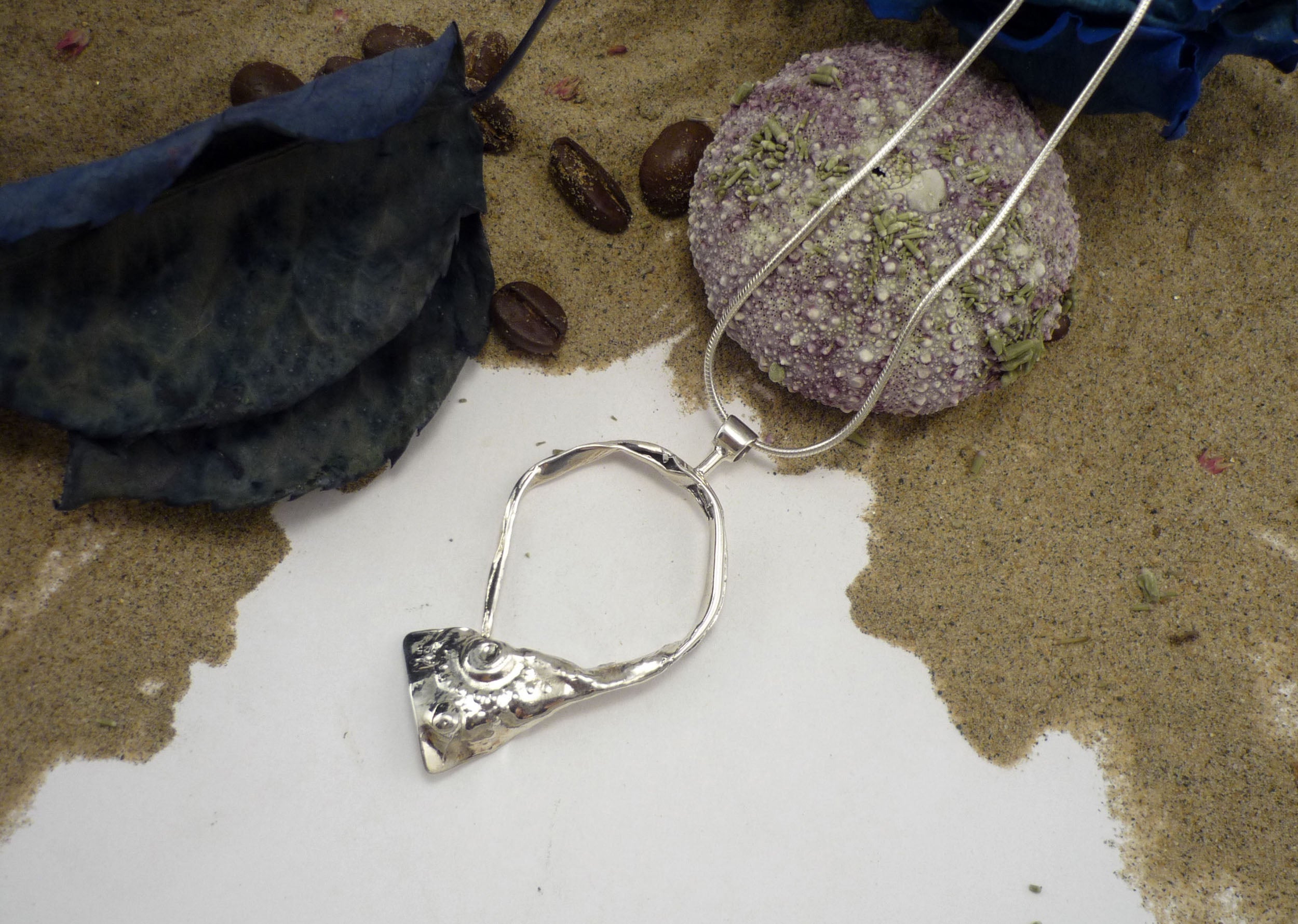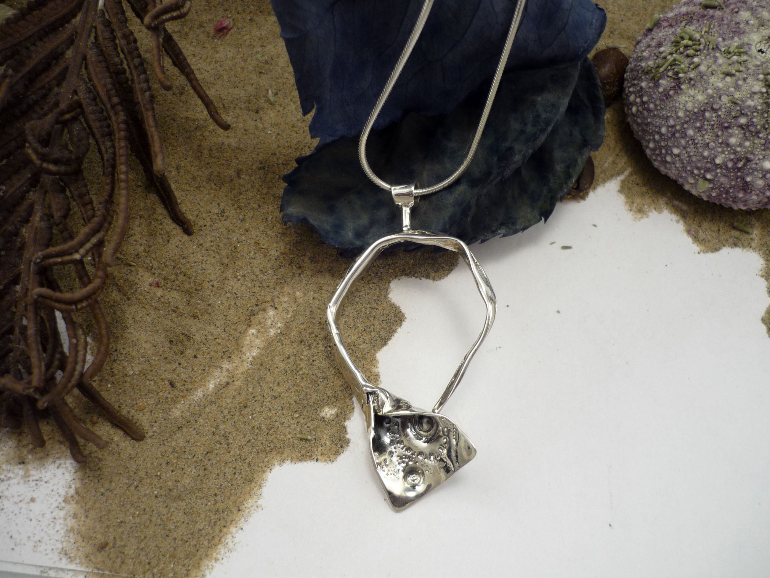 Tempête en mer, pendentif unique en argent sterling - empreinte de coquillage d'oursin, inspiration bord de mer