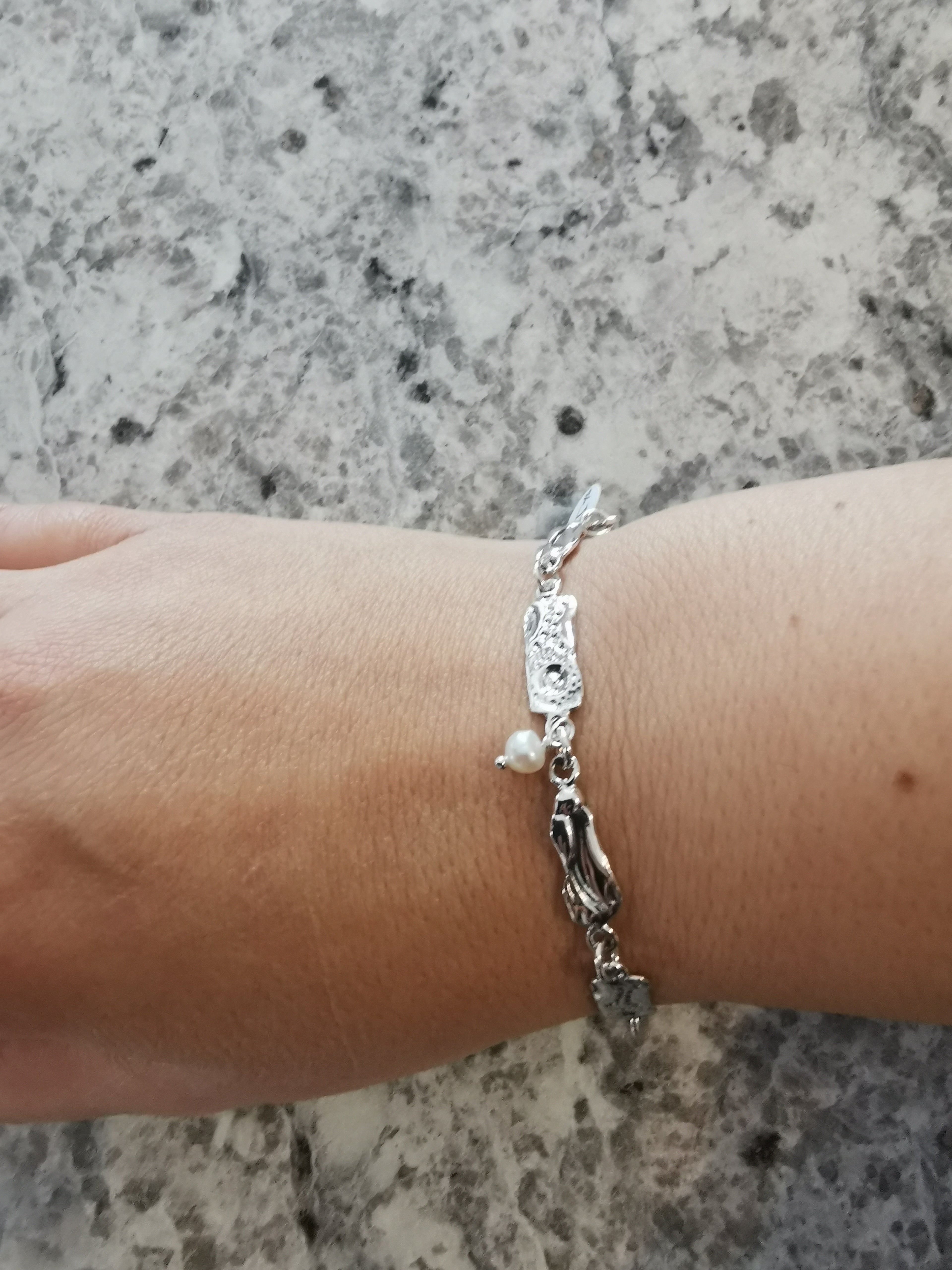 DIFFÉRENCE AVEC LES AUTRES BRACELETS: ce bracelet à une breloque perle d'eau douce et des mailles courtes. Il épouse bien tous les poignets de différentes tailles.