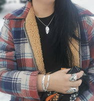 Seagrass is a unique, handcrafted sterling silver pendant where the sea urchin imprint transforms into a plant silhouette. Its textured surface evokes a leaf sculpted by the tides, like a fragment gathered between land and ocean.