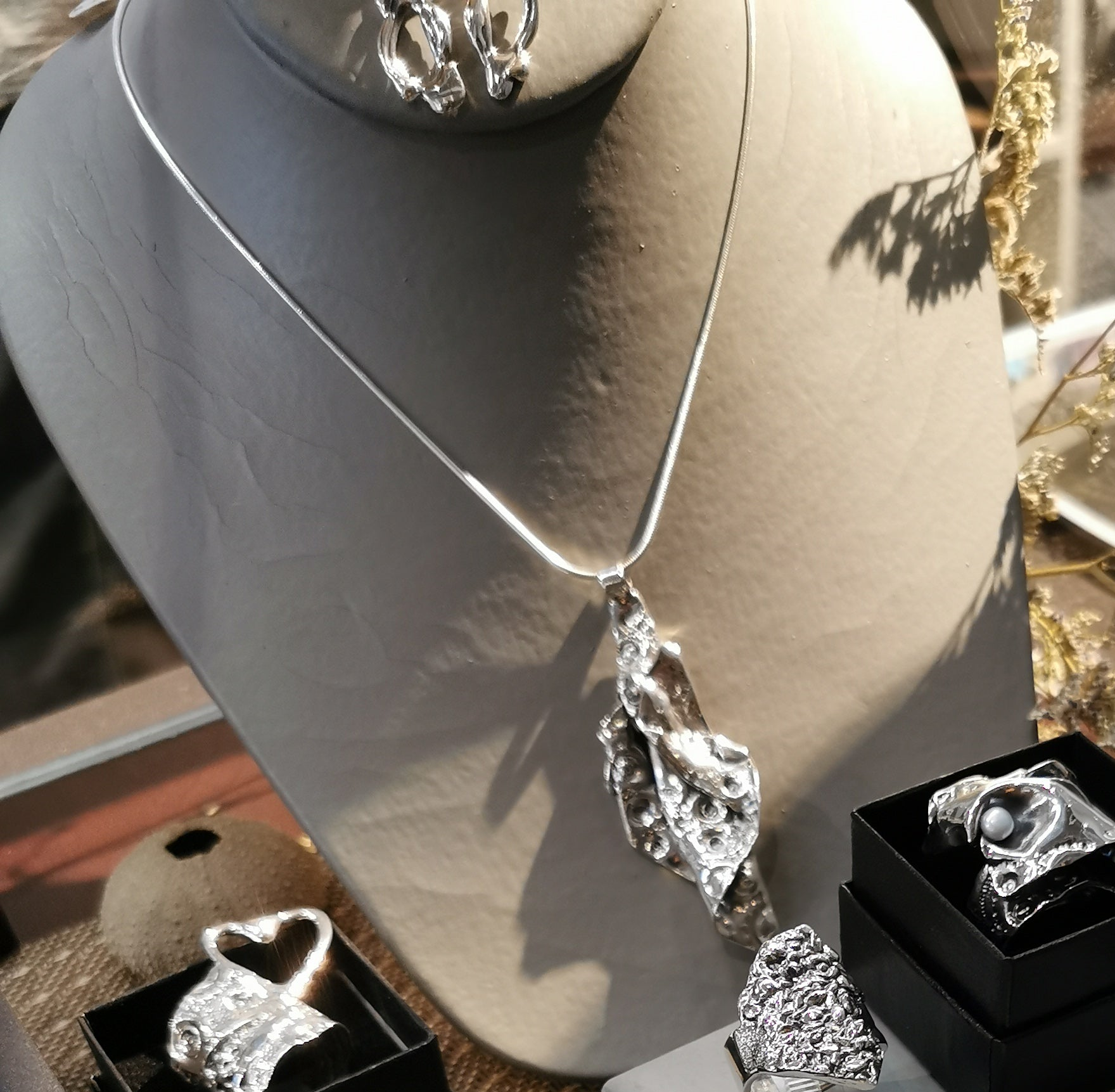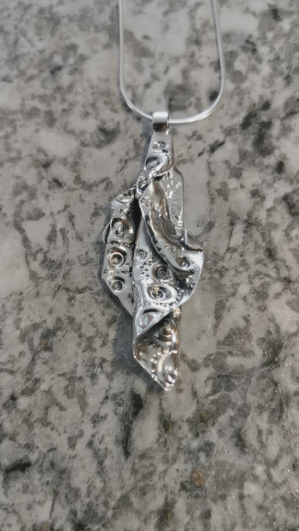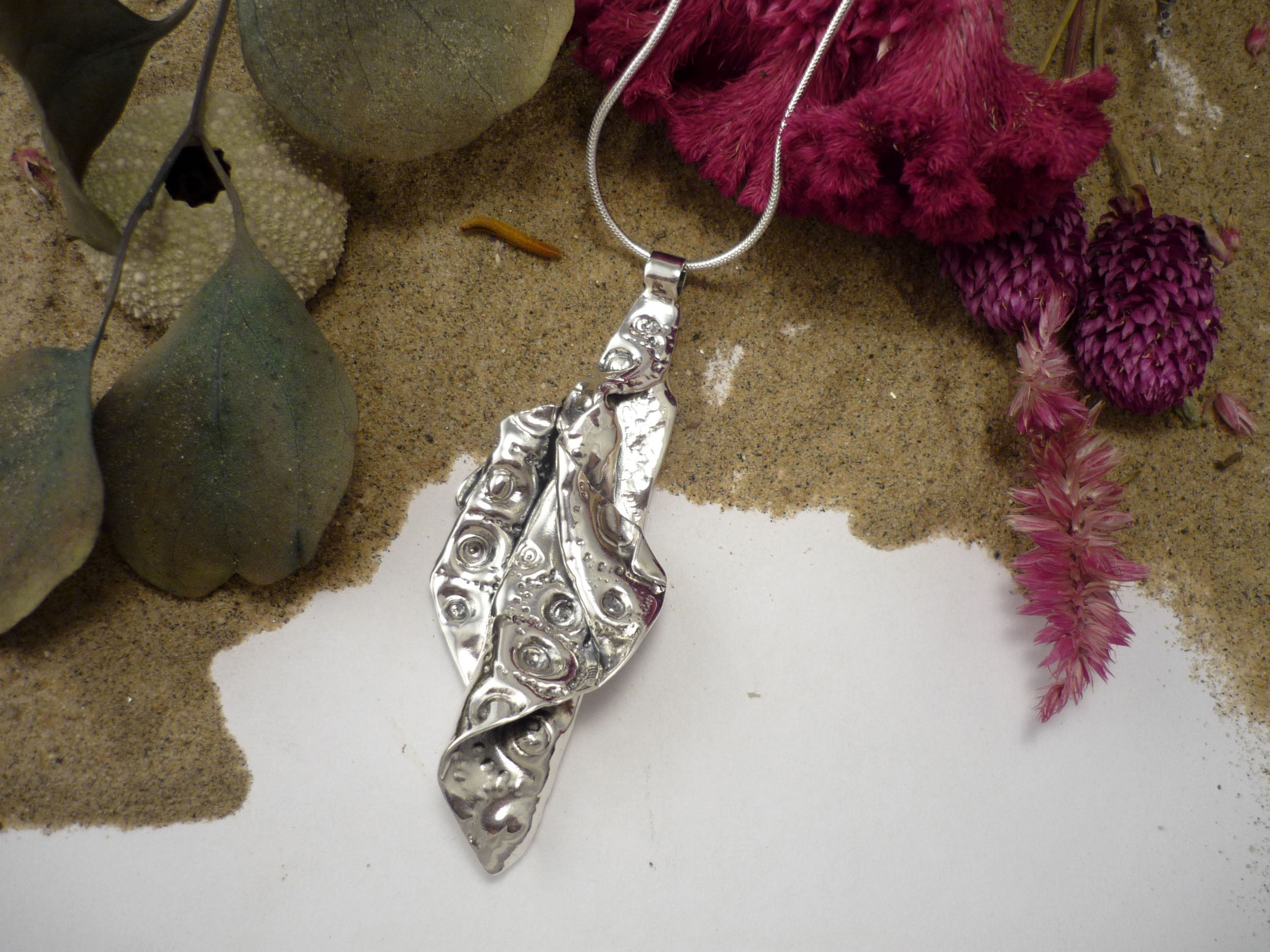 Chaque creux, chaque relief capture la poésie des marées qui avancent et reculent, comme un souffle. Un pendentif à la fois épuré et riche de sens, qui relie celle qui le porte à la beauté brute et apaisante de la mer.