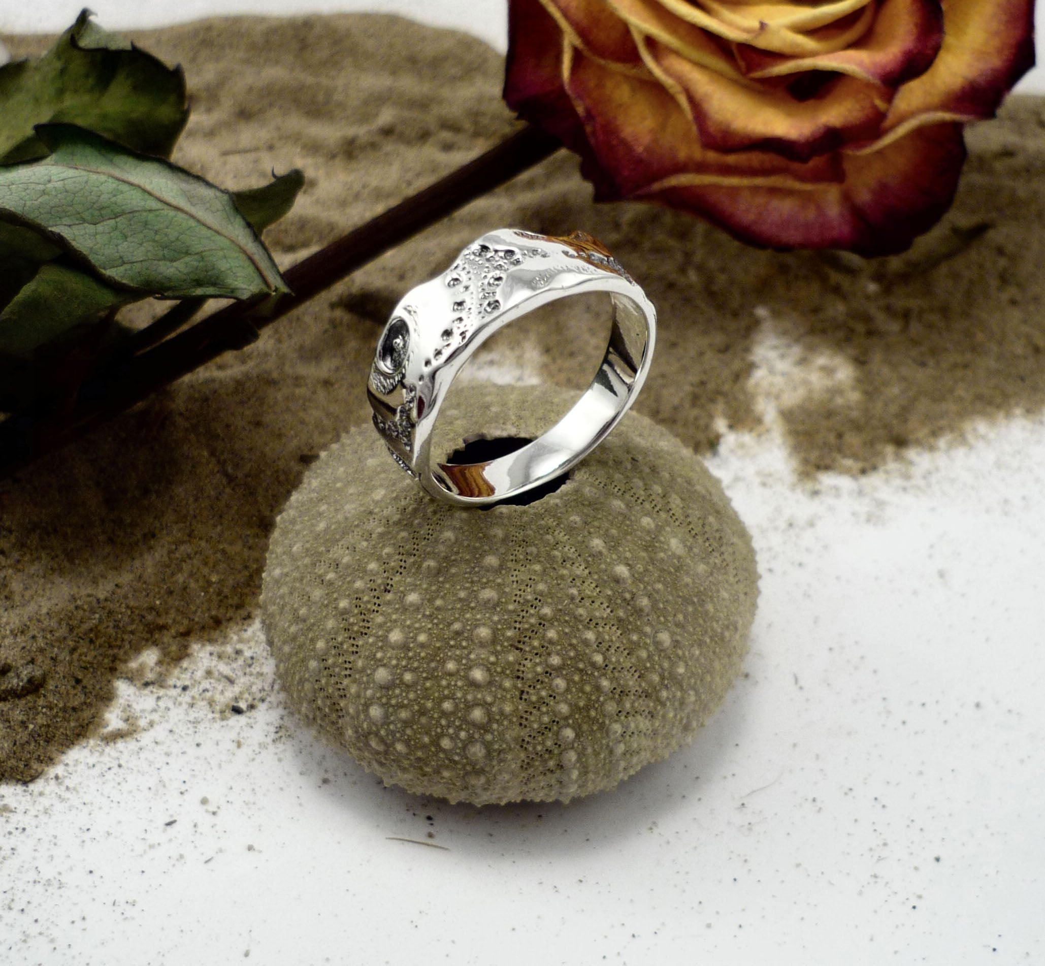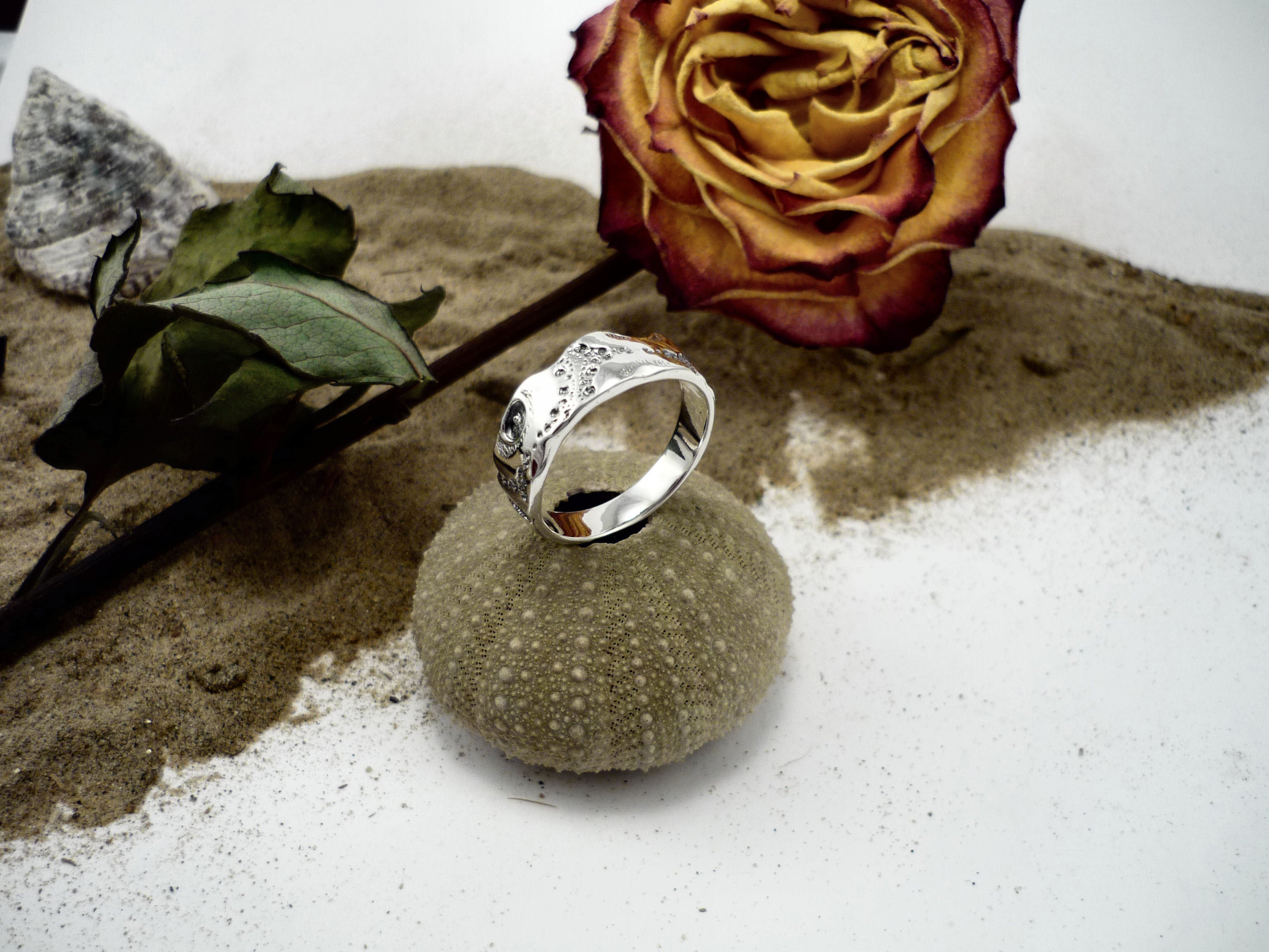 EKHINOS-F, sterling silver ring handmade in Canada inspired by a sea urchin shell