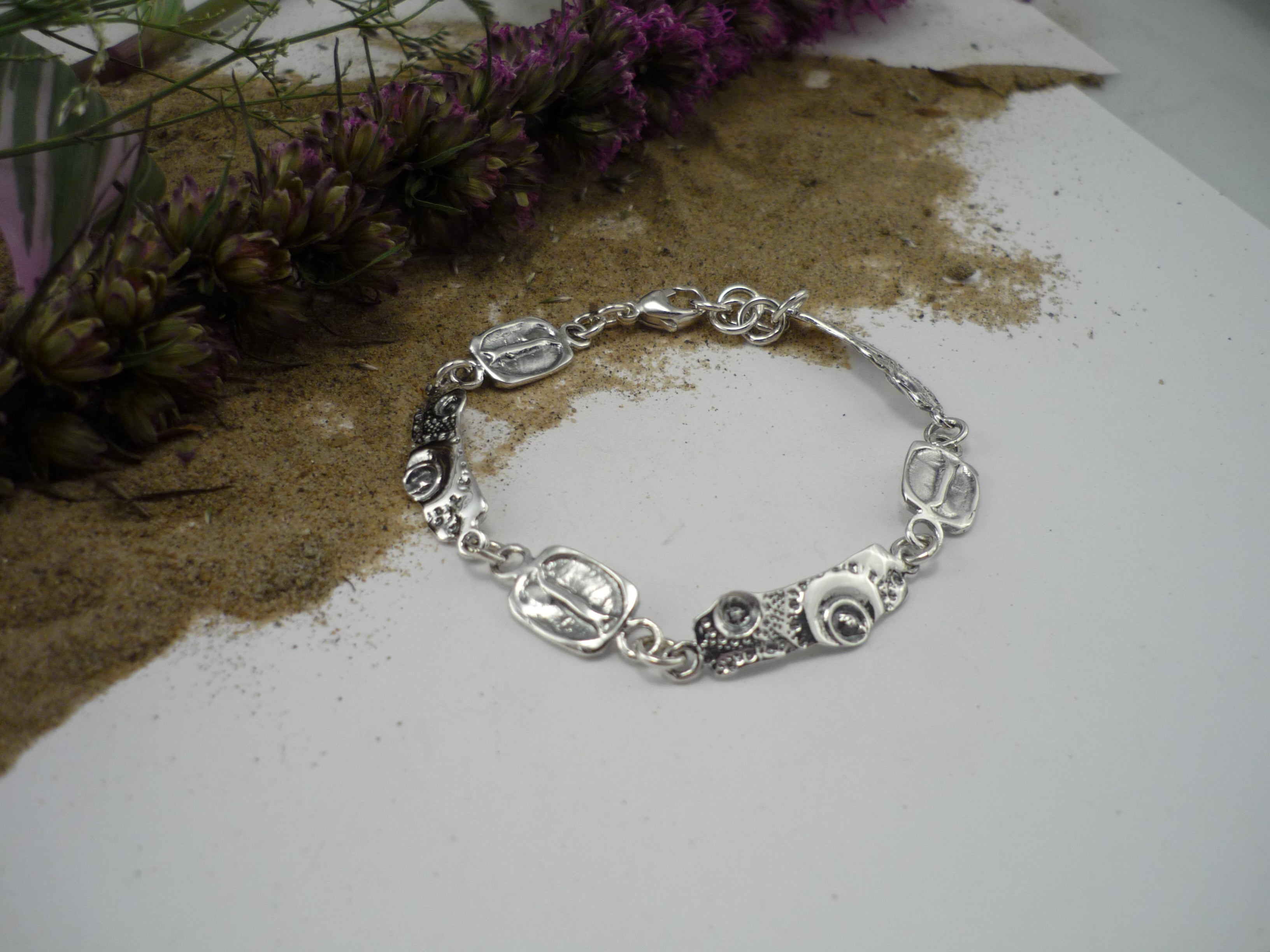 VAGUE D'ESPRESSO, bracelet en argent sterling avec empreinte oursin de mer et grain de café!